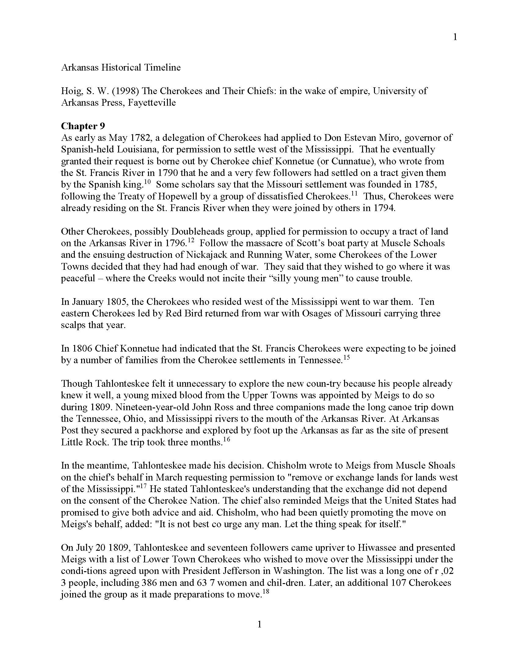 Arkansas Historical Timeline of the Chickamauga by Dr. Stanley Hoig University of Arkansas Press 1998